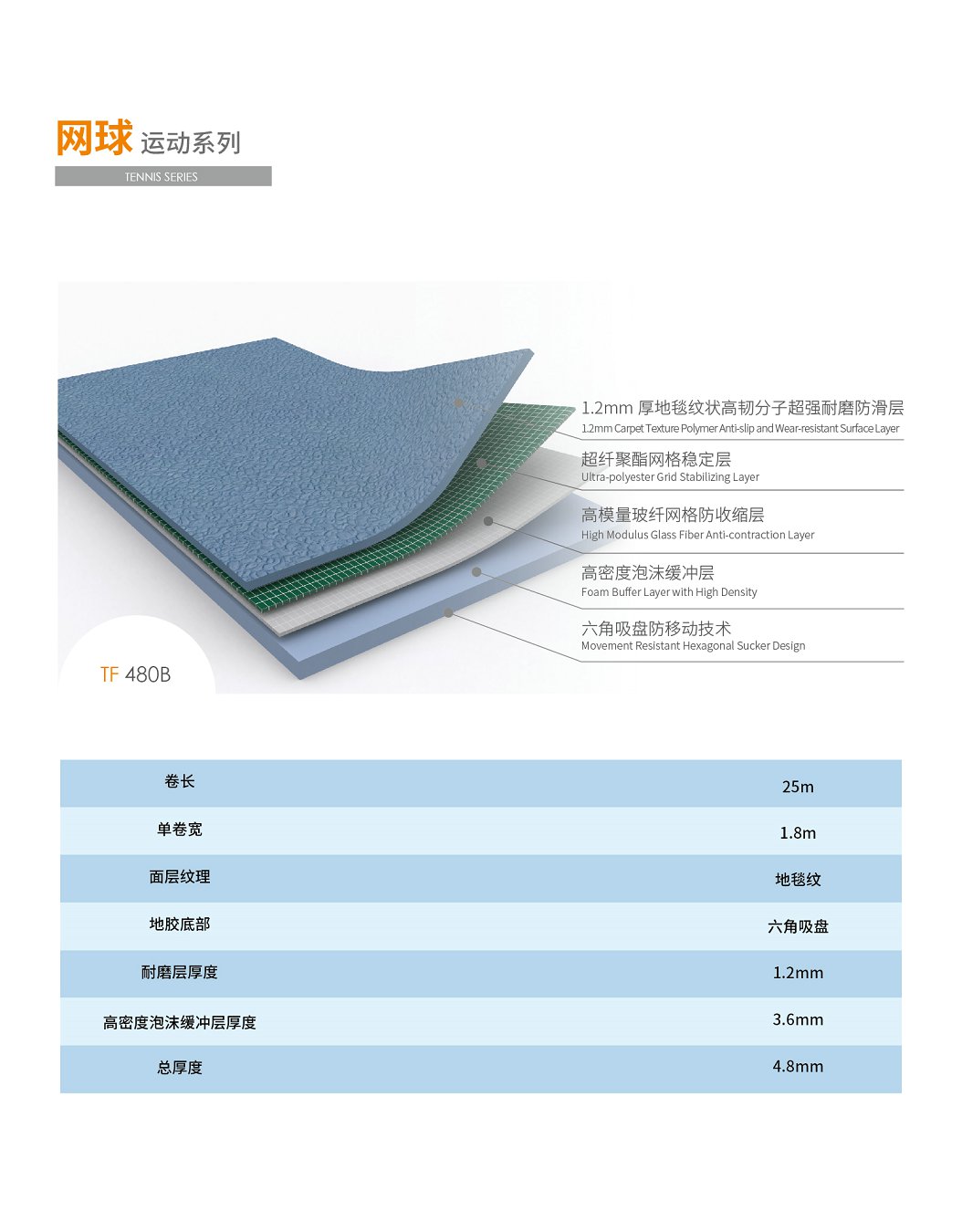 天速綜合地膠網球場地膠經典木紋系列TF 480G草地綠