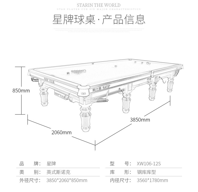 - 星牌 XW107-12S 英式斯諾克臺球桌